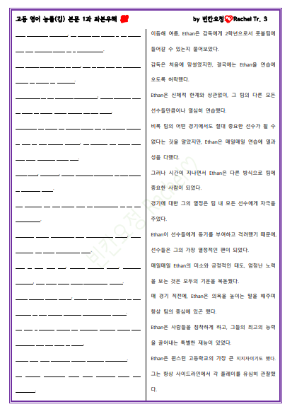 | 능률(김) 고등 영어 1과 본문 해석쓰기 (0) | 2023.04.11 |