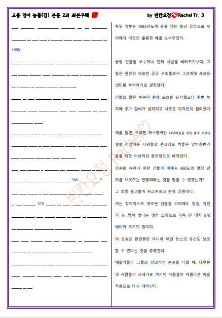 정답은 고등영어 능률(김) 2과 본문 좌본우해 포스팅을 참고해 주세요!