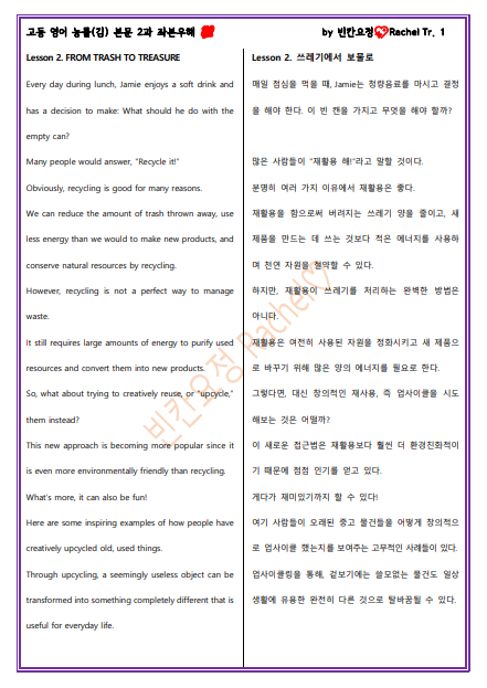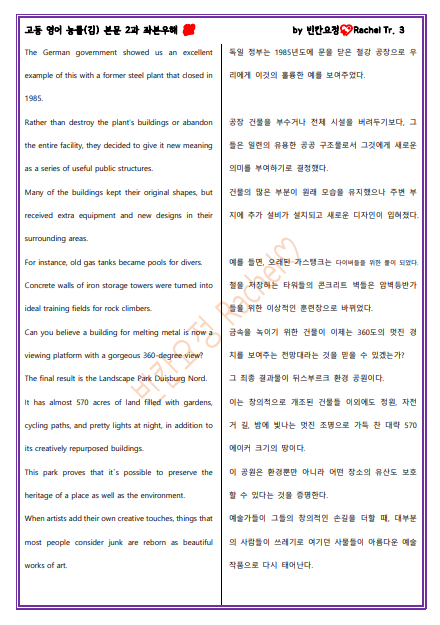 | 능률(김) 고등 영어 1과 본문 해석쓰기 (0) | 2023.04.11 |