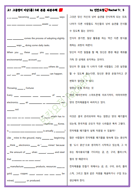 고1 고등영어 비상(홍) 3과 본문 좌본우해_빈칸요정(중간버전).pdf