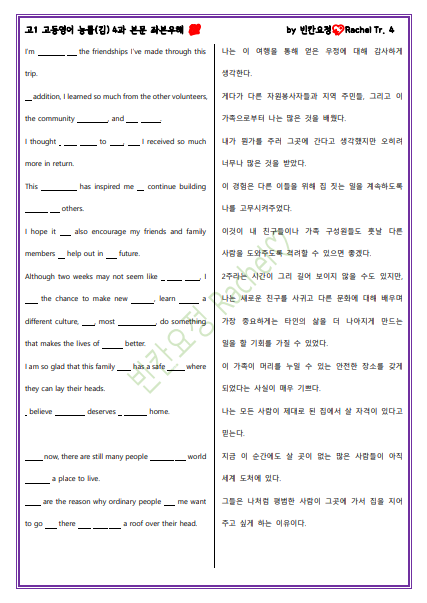 고1 고등영어 능률(김) 4과 본문 좌본우해_빈칸요정(쉬운버전).pdf