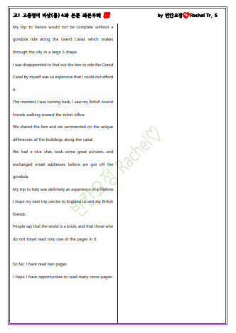 | 고1 고등영어 비상홍 4과 본문 전체 빈칸문제 (0) | 2023.07.29 |