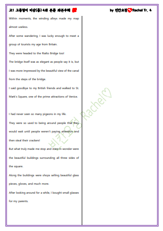 고1 고등영어 비상(홍) 4과 본문 좌본우해_빈칸요정(해석쓰기).pdf