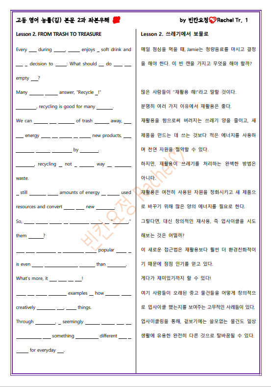 고1 고등영어 능률(김) 2과 본문 전체빈칸 (0) | 2023.04.19 |
