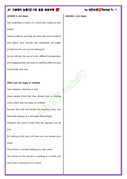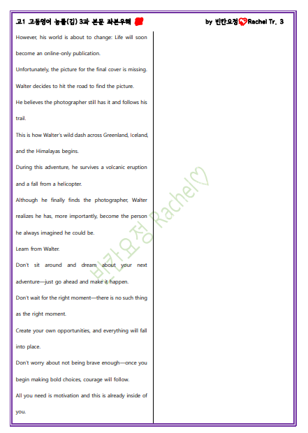 고1 고등영어 능률(김) 3과 본문 좌본우해_빈칸요정(해석쓰기).pdf