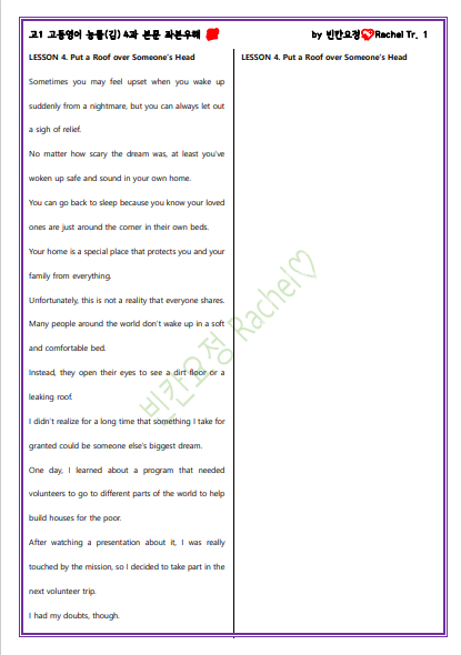 고1 고등영어 능률(김) 4과 본문 좌본우해_빈칸요정(해석쓰기).pdf