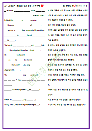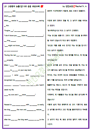 고1 영어 능률김 5과 본문 전체 빈칸문제 (0) | 2023.09.16 |