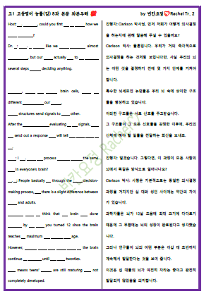 고1 영어 능률김 8과 본문 빈칸문제(쉬운버전) (0) | 2023.10.06 |