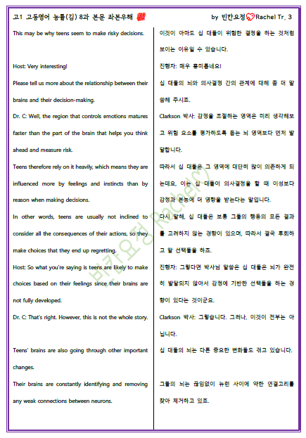 고1 영어 능률김 8과 본문 좌본우해