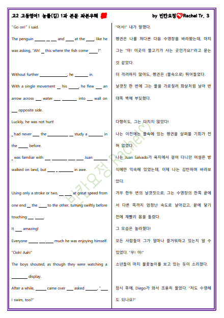고2 고등영어1 능률(김) 1과 본문 좌본우해_빈칸요정(쉬운버전).pdf