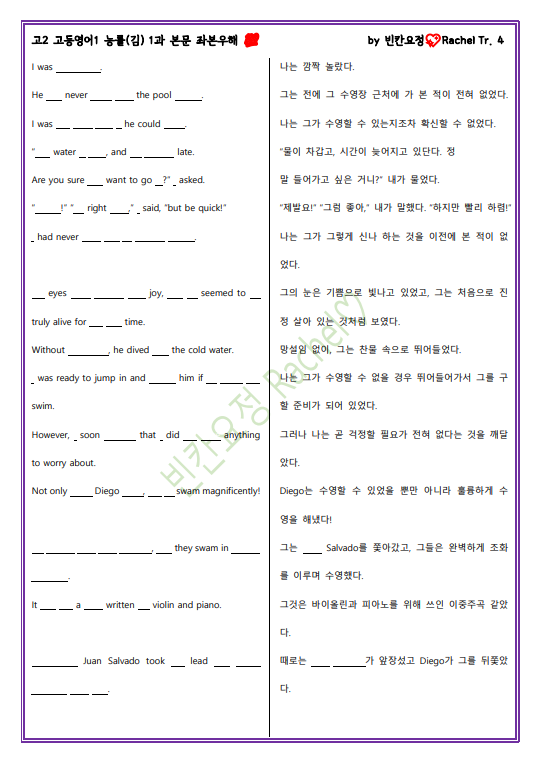 고2 고등영어1 능률(김) 1과 본문 좌본우해_빈칸요정(중간버전).pdf