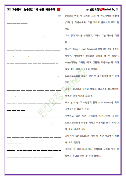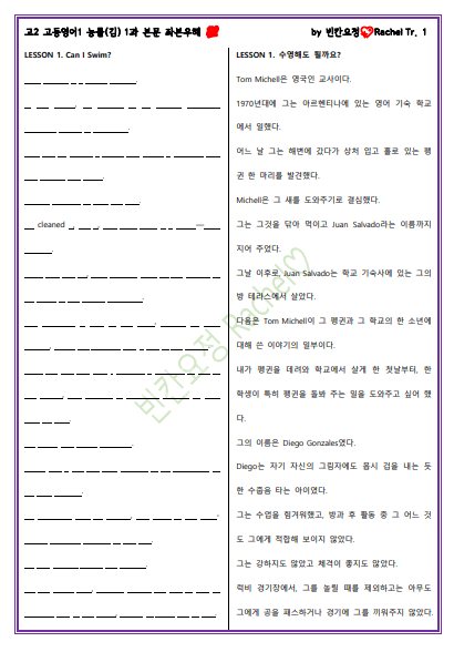 고2 고등영어1 능률(김) 1과 본문 좌본우해_빈칸요정(전체빈칸).pdf