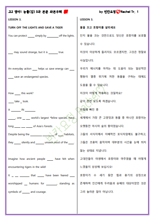 정답은 고2 영어1 능률김 3과 본문 좌본우해 포스팅을 확인해 주세요 : )