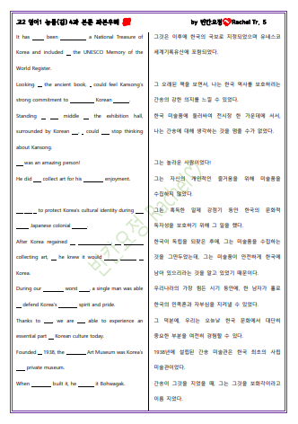 고2 영어1 능률김 3과 본문 전체 빈칸문제 (0) | 2023.06.05 |