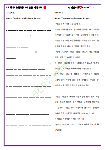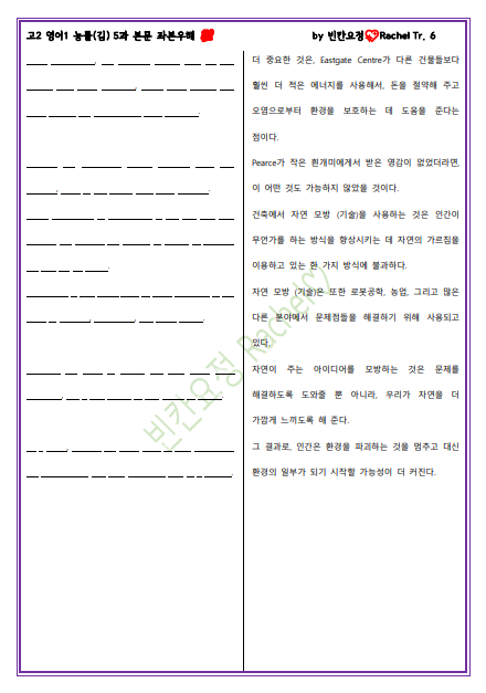 정답은 고2 영어 1 능률김 5과 본문 좌본우해 포스팅을 확인해 주세요~