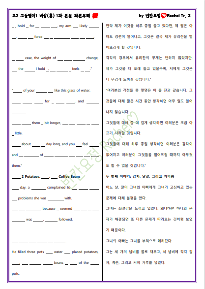 고2 영어1 비상홍 1과 본문 빈칸문제(중간버전)