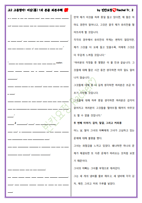 | 고2 영어1 비상홍 2과 본문 좌본우해 (1) | 2023.04.20 |