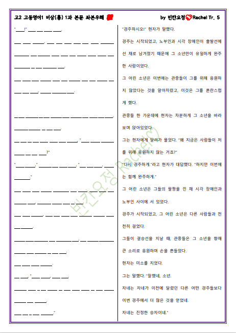 | 고2 영어1 비상홍 1과 본문 빈칸문제(쉬운버전) (0) | 2023.04.20 |