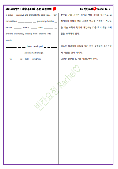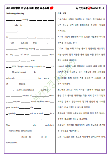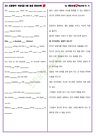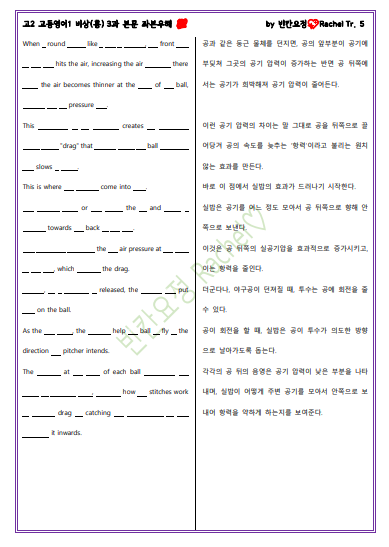 | 고2 영어1 비상홍 3과 본문 전체 빈칸문제 (0) | 2023.04.27 |