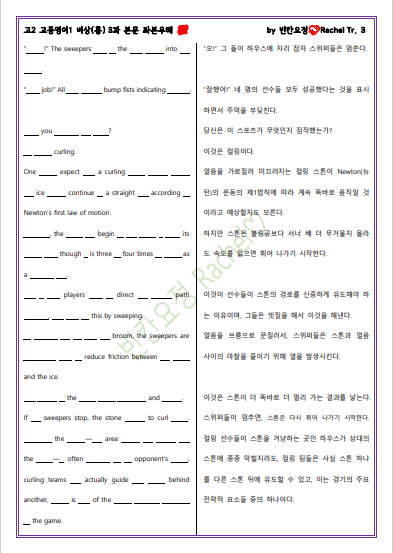 고2 영어1 비상홍 3과 본문 전체 빈칸문제 (0) | 2023.04.27 |