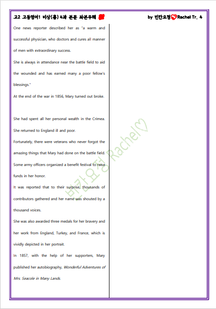 고2 고등영어1 비상(홍) 4과 본문 좌본우해_빈칸요정(해석쓰기).pdf