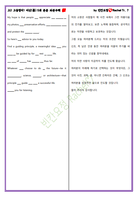 고2 고등영어1 비상(홍) 5과 본문 좌본우해_빈칸요정(쉬운버전).pdf
