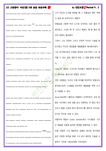 고2 영어1 비상홍 5과 본문 전체 빈칸문제