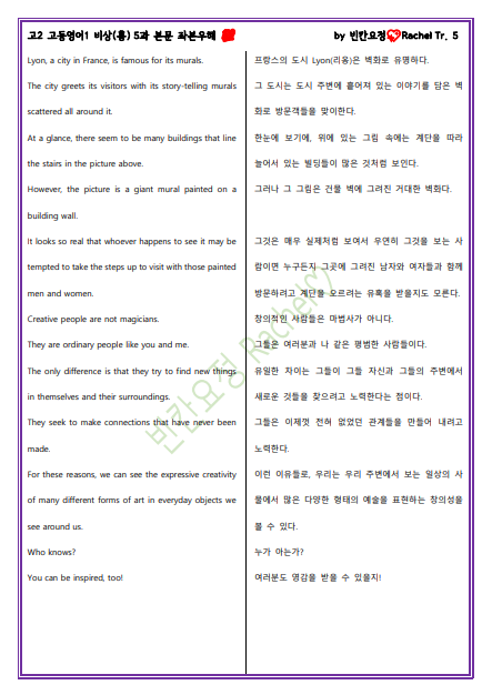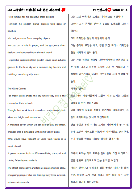 | 고2 영어1 비상홍 4과 본문 해석쓰기 (0) | 2023.05.06 |