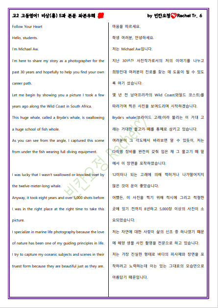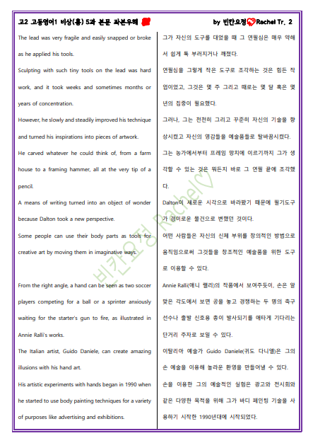 | 고2 영어1 비상홍 4과 본문 해석쓰기 (0) | 2023.05.06 |