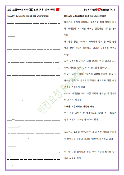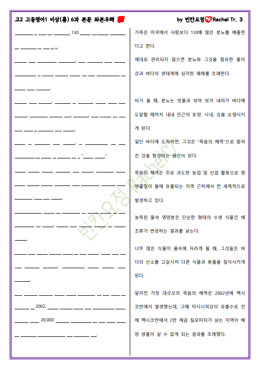 고2 고등영어1 비상(홍) 6과 본문 좌본우해_빈칸요정(전체빈칸).pdf