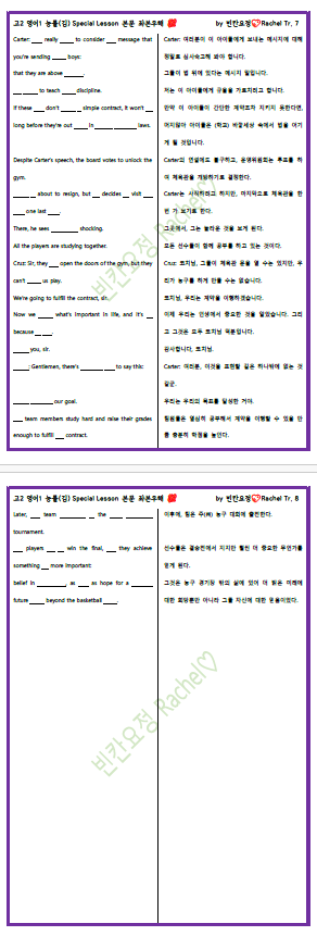 | 영어1 능률김 Special Lesson 본문 빈칸문제(중간버전) (0) | 2023.11.09 |