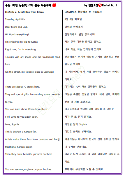 중1 능률김 1과 본문 해석쓰기 (0) | 2024.01.15 |