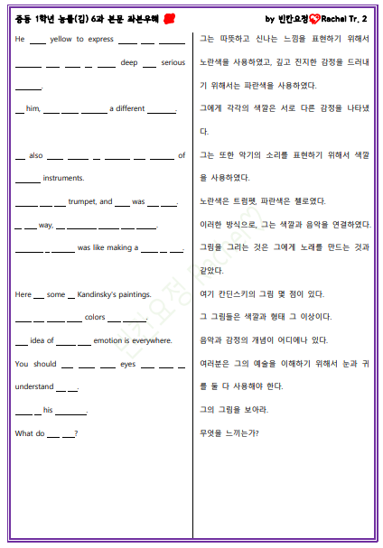 | 중1 능률김 6과 본문 전체 빈칸문제 (0) | 2023.12.08 |