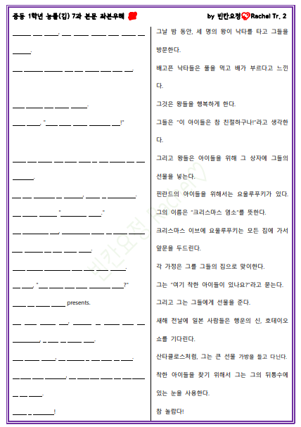 | 중1 능률김 7과 본문 빈칸문제(쉬운버전) (0) | 2023.12.05 |