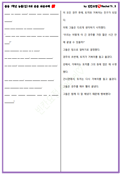 | 중1 능률김 8과 본문 빈칸문제(쉬운버전) (0) | 2023.12.06 |
