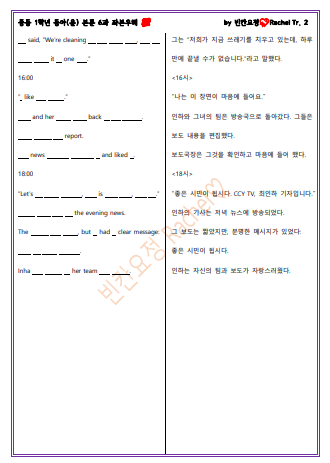 중1 동아윤 6과 본문 전체 빈칸문제 (0) | 2023.08.24 |