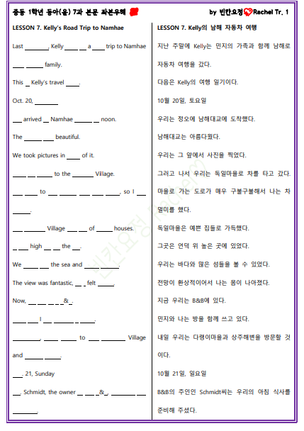 | 중1 동아윤 7과 본문 전체 빈칸문제 (0) | 2023.11.19 |