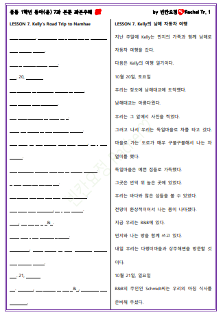 | 중1 동아윤 7과 본문 빈칸문제(쉬운버전) (1) | 2023.11.19 |