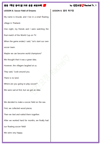 | 중1 동아윤 8과 본문 전체 빈칸문제 (0) | 2023.11.20 |