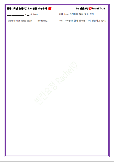 | 중2 능률김 3과 본문 전체 빈칸문제 (1) | 2023.05.03 |