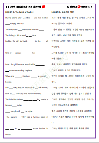 | 중2 능률김 5과 본문 전체 빈칸문제 (0) | 2023.09.03 |