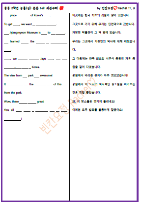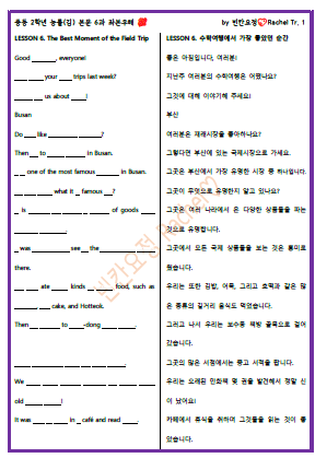 | 중2 능률김 6과 본문 전체 빈칸문제 (1) | 2023.09.14 |