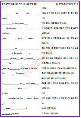 | 중2 능률김 5과 본문 전체 빈칸문제 (0) | 2023.09.03 |