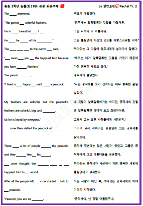 중2 능률김 8과 본문 빈칸문제(쉬운버전)