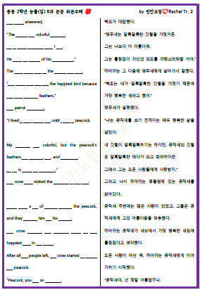 | 중2 능률김 8과 본문 빈칸문제(쉬운버전) (0) | 2023.11.04 |