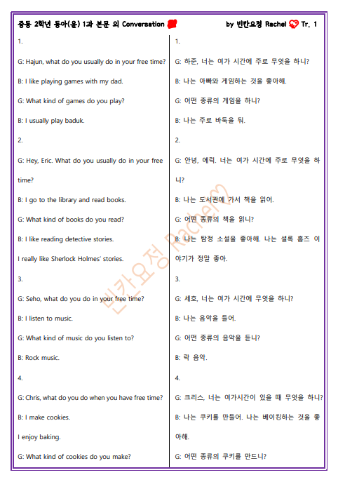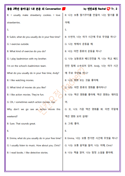 중2 동아(윤) 2과 본문 외 conversation 좌본우해 (0) | 2023.04.19 |