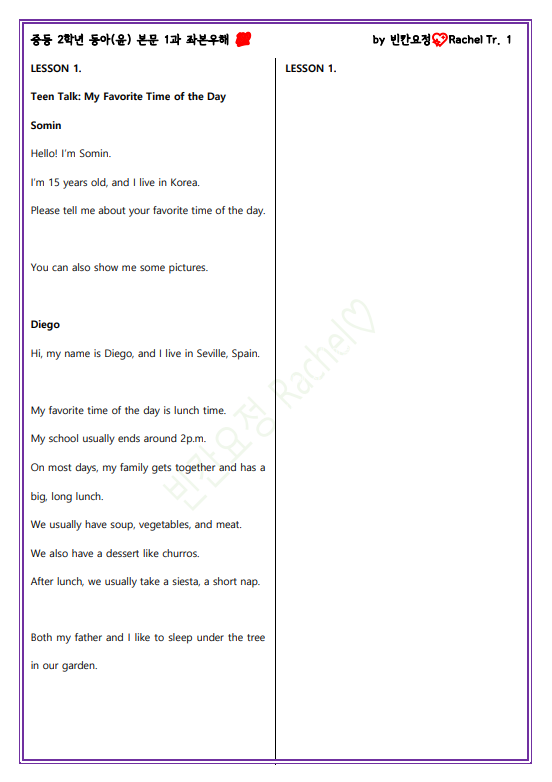 중2 동아(윤) 1과 좌본우해_빈칸요정(해석쓰기).pdf
