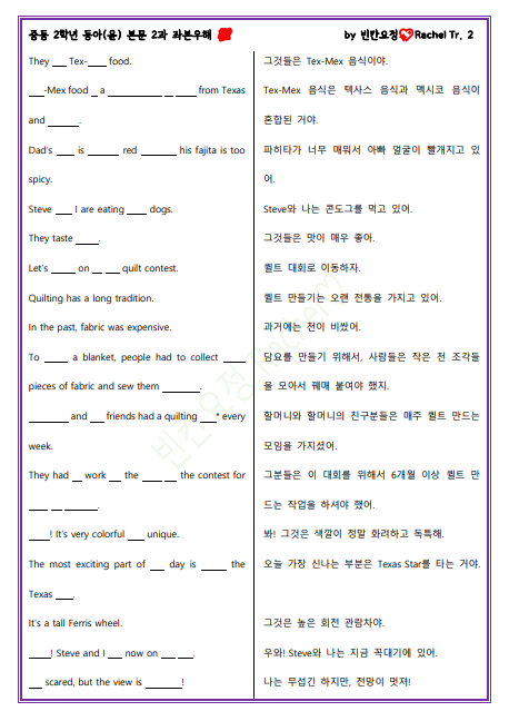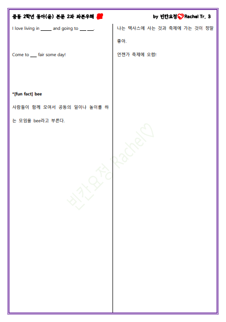 동아(윤) 중학교 2학년 2과 본문 빈칸 자료 (쉬운 버전)