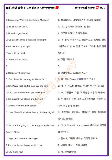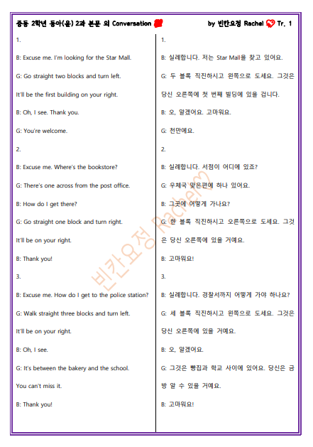 중2 동아(윤) 2과 본문 외 conversation 좌본우해