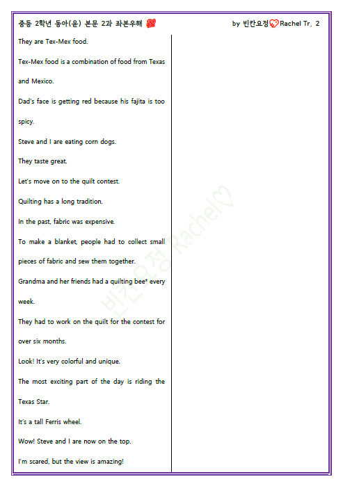 중2 동아(윤) 2과 좌본우해_빈칸요정(해석쓰기).pdf